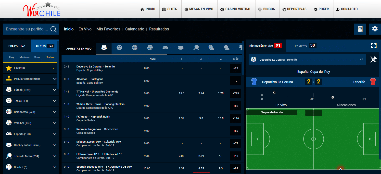 Si bien, su fuerte es operar como casino en línea, el mercado de apuestas incluyendo a la Primera División de Chile y las cuotas que ofrece este sitio web son bastante competitivas.